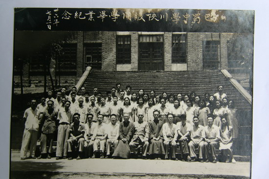中学川陕级毕业生(1947年7月,前排右七校董王缵绪、右八周勖成校长)