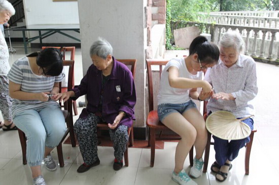 而后,同学们陪着老人们聊天、为老人们剪指甲。在这一过程中,一位92岁的爷爷开心的向我们表示,他非常高兴同学们能够来看望他们,陪他说说话。我们听他们讲过去的历史,听他们感谢当今美好生活。我们也跟老人们聊现今民生政策、社会趣闻,帮助他们疏导心理,建立快乐生活理念……在聊到兴致高时,老人们手舞足蹈,甚是可爱。不少同学表示,和老人们的对话让他们了解到了爷爷奶奶们生活的孤寂,感触颇深,在今后一定会多多关心家中长辈,也会多来看看养老院的老人们。