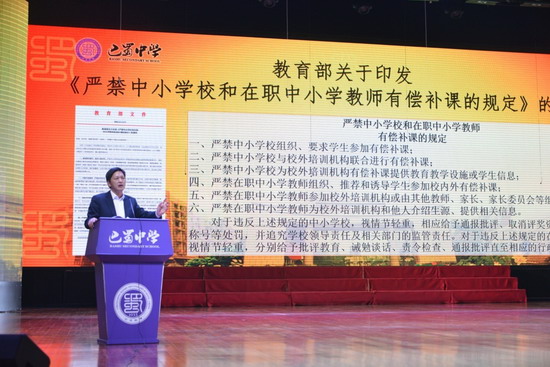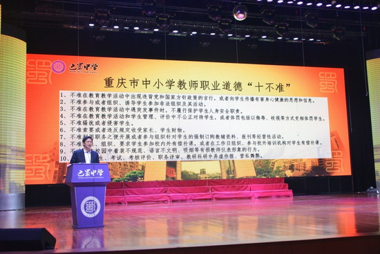 观影前,党委书记舒义海同志与全体党员重温了《重庆市中小学教师职业道德“十不准”》,教育部《严禁中小学校和在职中小学教师有偿补课的规定》等规定,表达学校党委旗帜鲜明地禁止教师违规补课的态度,希望全体教师切实维护教师队伍的形象,以德为先,争做师德标兵。