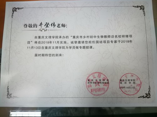 2018年11月13日,开云app下载官方网站安卓 生物齐登伟老师在重庆文理学院为““国培计划(2018)”—重庆市乡村初中生物教师访名校研修项目 ”的全体教师做了题为《生物教学的研究方法—以核心期刊的发表为例》的专题讲座。受到参会老师们的一致好评!